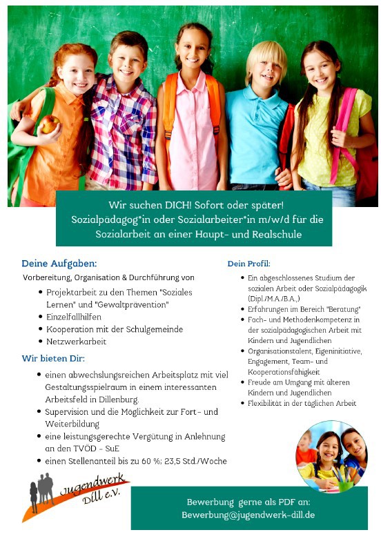 für die Sozialarbeit an der Johann-von-Nassau-Schule in Dillenburg gesucht.
